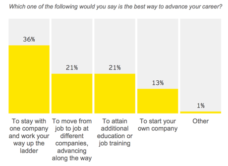 - The danger of attrition amongst millennials is also lower than one would expect. According to an E&Y study, the majority of millennials believe loyalty to one company is the best way to advance their career, thereby defying the stereotype of being job-hoppers.