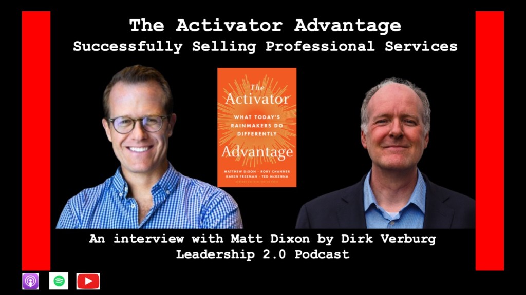 In the 33rd episode of the Leadership 2.0 podcast, I interviewed Matt Dixon from DCM Insights about ‘The Activator Advantage – What Today’s Rainmakers Do Differently‘.
